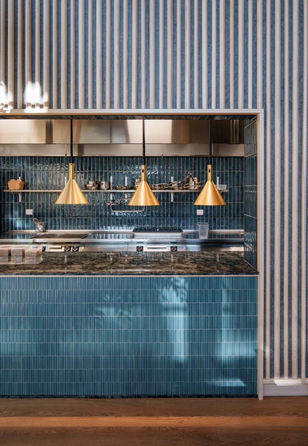 Konceptet vi tog fram är utformat för att hålla över tid, både funktionellt och estetiskt. En specialdesignad akustikvägg bidrar till rumsupplevelsen och skapar en behaglig ljudmiljö. Uppdraget omfattade projektering och ritning samt leverans av köksutrustning, inredning och belysning, där varje del samverkar i ett varierat rumsligt uttryck anpassat för olika typer av vistelse och tempo.